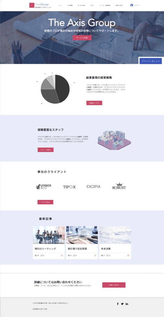 スクール課題にて、The Axis Groupのコーポレートサイトを作成